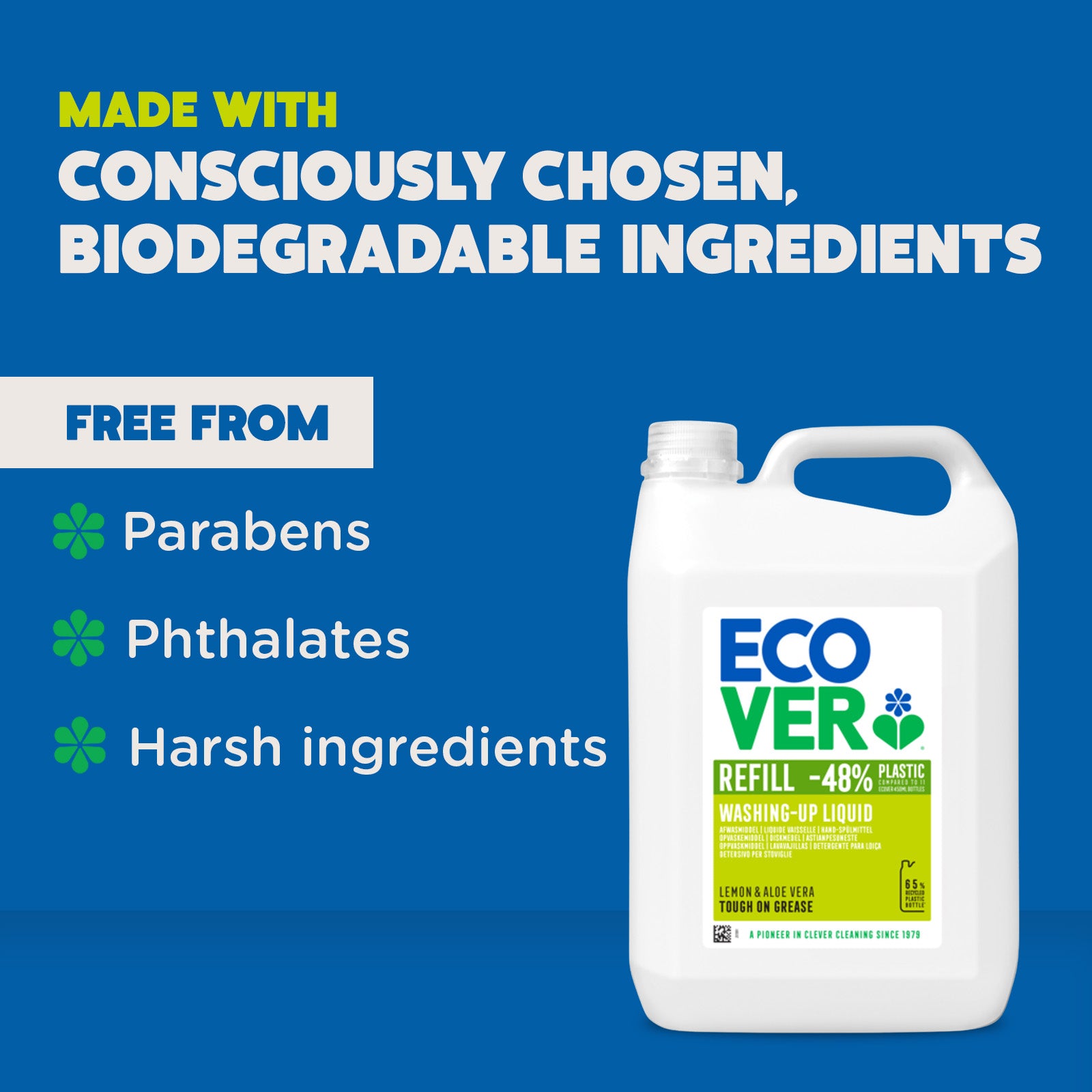 Our washing-up liquid unleashes the power of plant-based, biodegradable ingredients to leave your dishes squeaky clean.