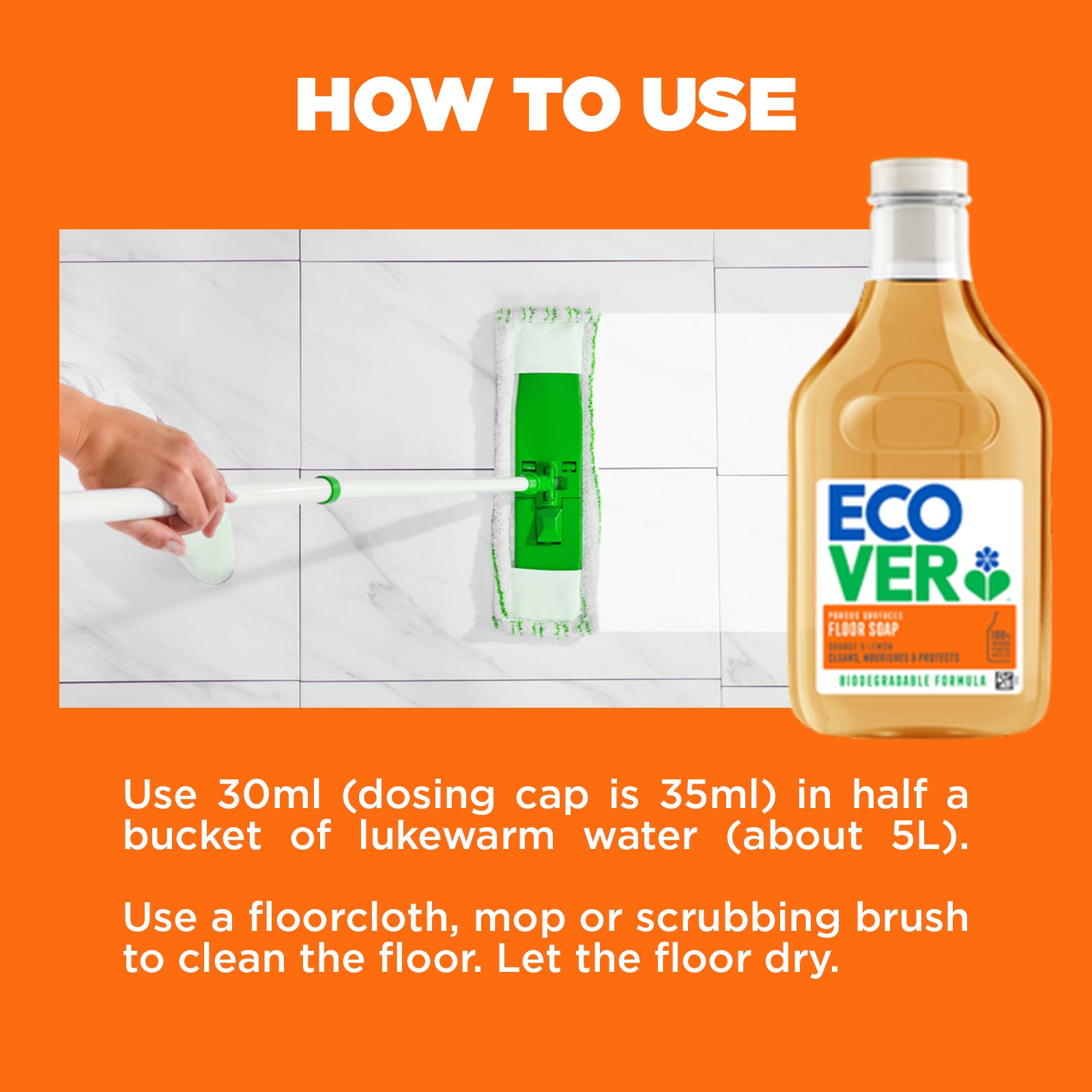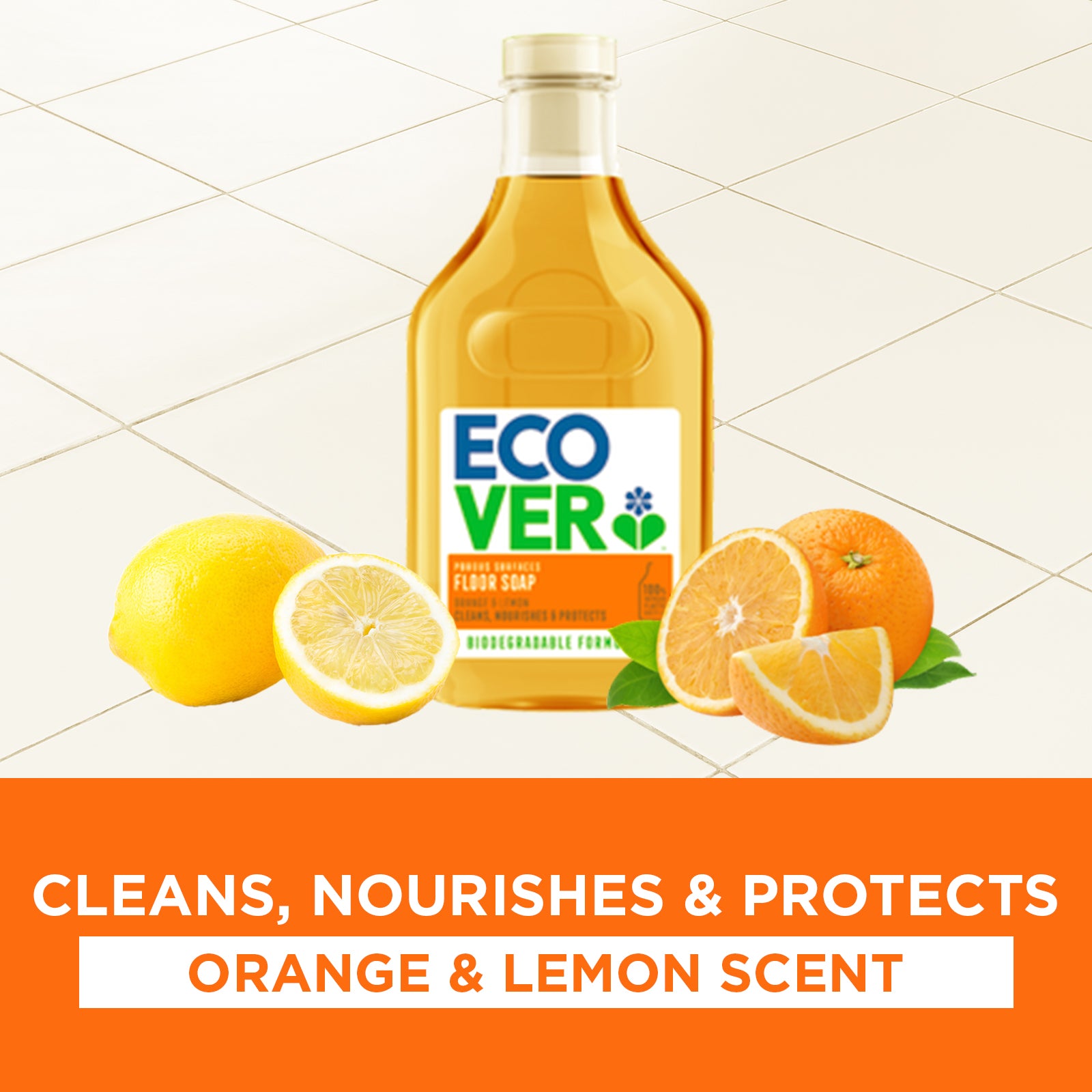 Our Orange & lemon floor soap cleans, nourishes and protects.