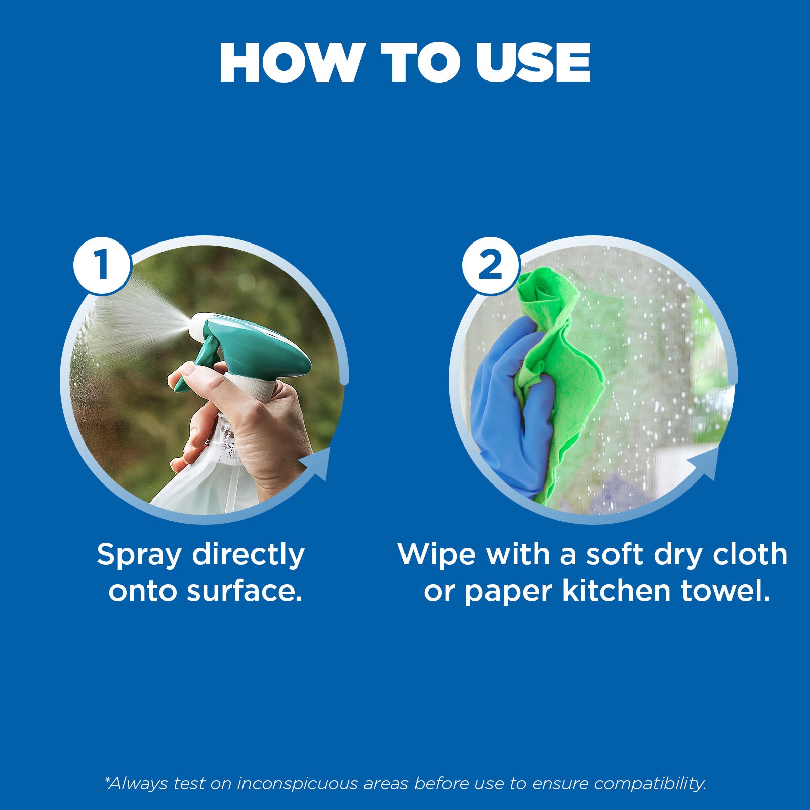 Always test on inconspicuous areas before use to ensure compatibility. Spray directly onto surface. Wipe with a soft dry cloth or paper kitchen towel.